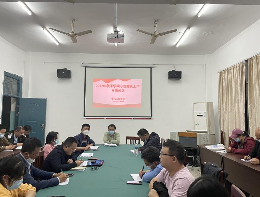 2022年10月25日,在明辨楼党员活动室102,电气工程学院召开2022年秋季学期心理健康工作专题会议,对秋季学期心理重点工作进行统筹安排。分院院长黄锦文、全体辅导员、班主任参加了本次会议。
