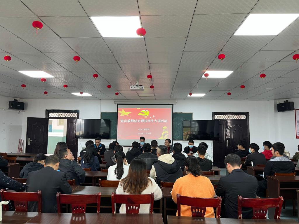 2022年11月24日中午,在明辨楼312室,电气工程学院党支部开展党员教师结对帮扶学生专项活动。学院院长郭志江参加活动,并讲话。