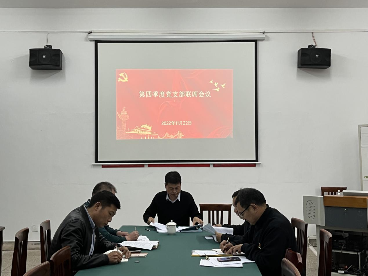 为落实《关于推动党组(党委)领导班子成员落实“一岗双责”全面建立党支部联席会议制度的通知》赣直党字〔2020〕14号文件要求,2022年11月22日下午,学院党委副书记、院长郭志江在明辨楼102主持召开挂点支部第四季度党支部联席会议。电气工程学院党支部书记刘绍彬、院长黄锦文,继续教育中心党支部书记、主任徐裕和,副主任郭永飞参加会议。