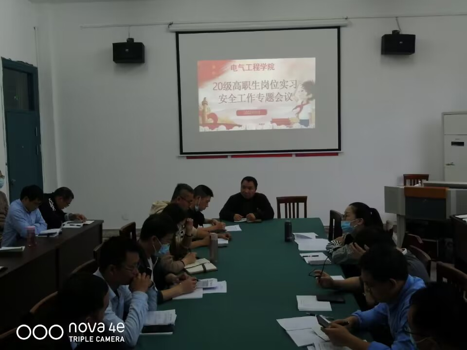 为深入落实20级高职毕业生岗位实习安全工作,近日,电气工程学院在明辨楼党员活动室召开了岗位实习安全工作专题会。会议由分院学生工作负责人胡小平主持,院长黄锦文及全体20级高职毕业班辅导员参加。