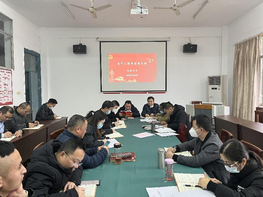 2022年12月6日,在明辨楼102党员活动室,电气工程学院召开了十二月份第一次党员学习会议。会议由分院党支部书记刘绍彬主持,分院院长黄锦文和全体党员参加。