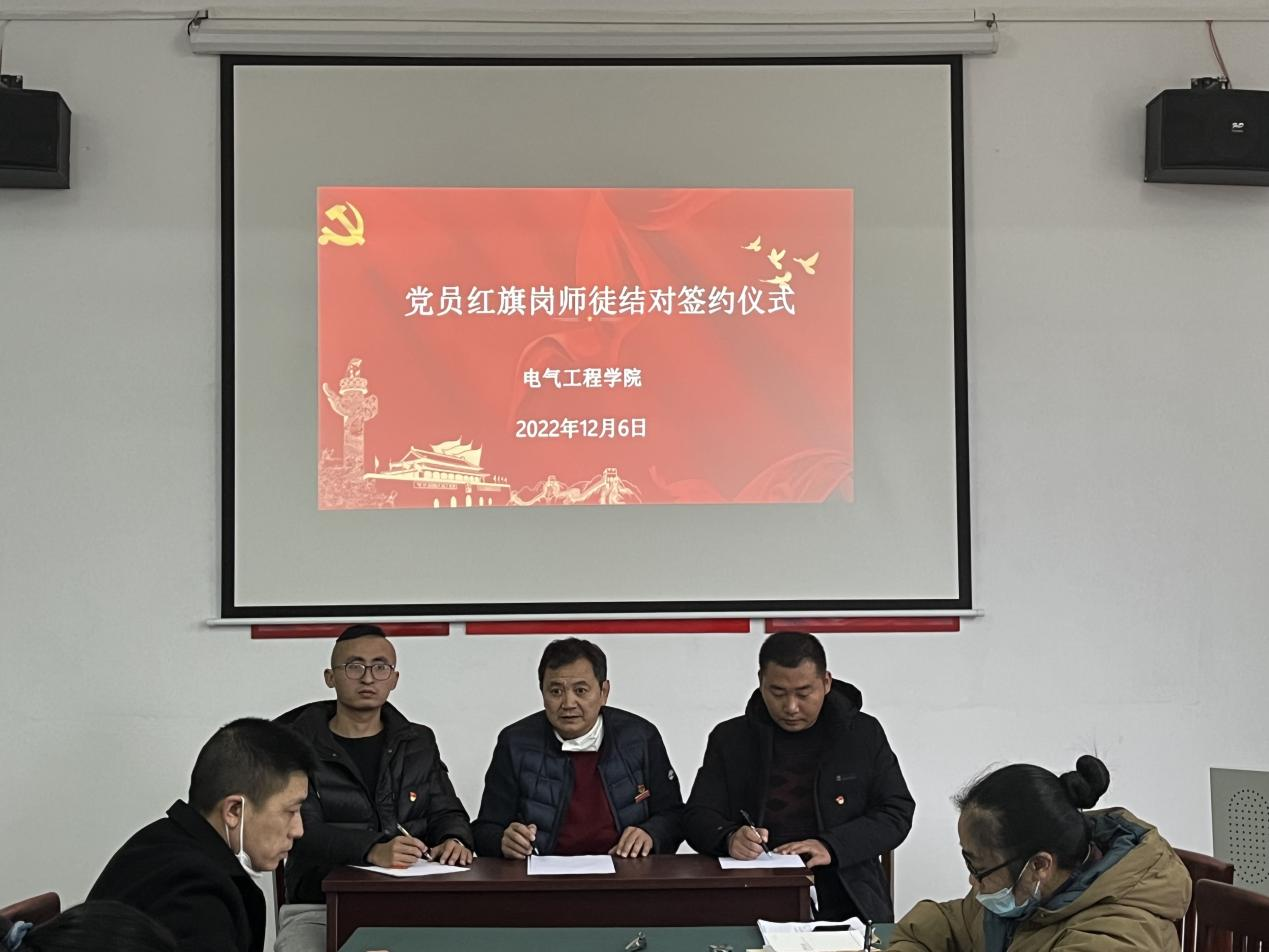 2022年12月6日下午,在明辨楼102党员活动室,电气工程学院举行党员红旗岗师徒结对签约仪式。按照党员红旗岗的工作要求,新进教师都找到了各自的师傅。仪式由电气工程学院党支部书记刘绍彬主持,全体党员参加。