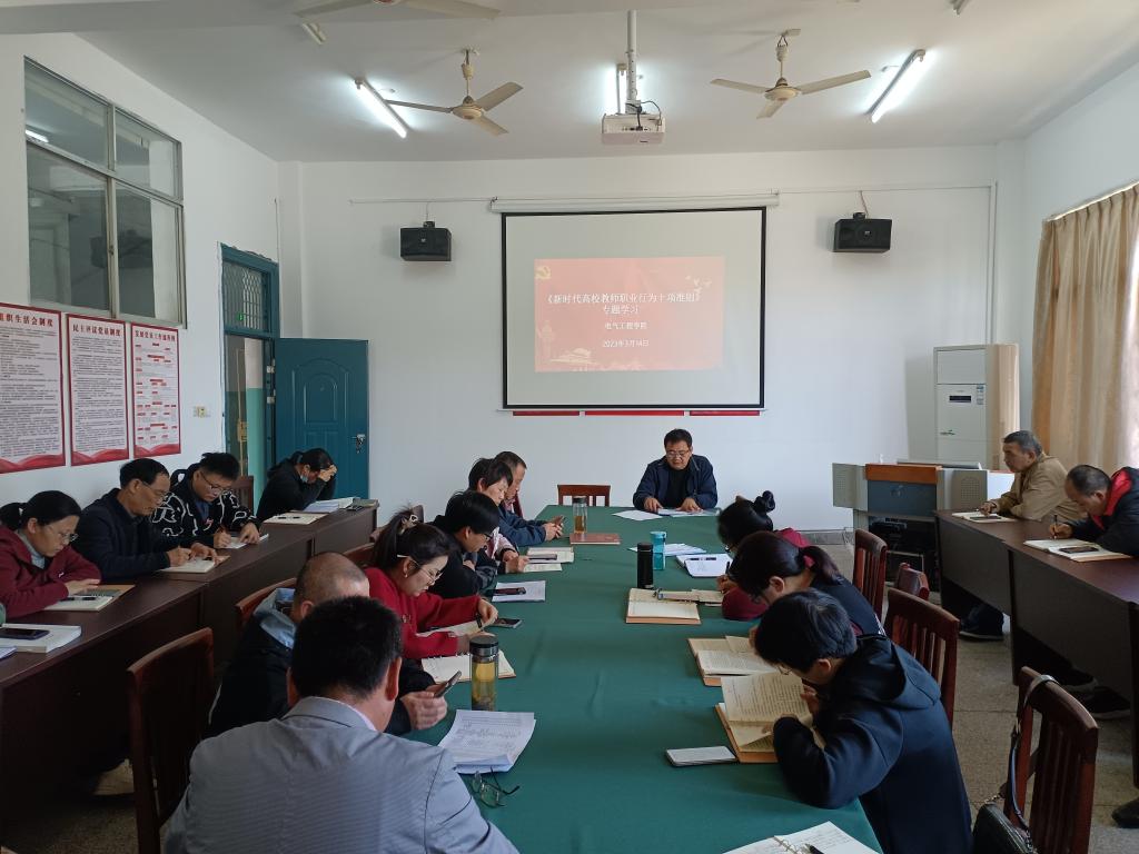 3月14日下午,在明辨楼102党员活动室,电气工程学院开展《新时代高校教师职业行为十项准则》专题学习会议。会议由分院党支部书记刘绍彬主持,全体教师参加。