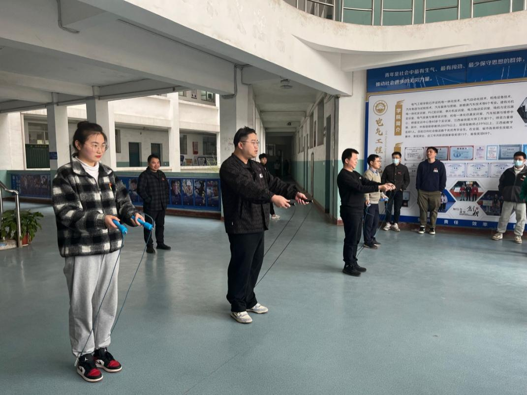 3月21日下午,在第四教学楼一楼大厅,电气工程学院开展了教职工跳绳比赛。
