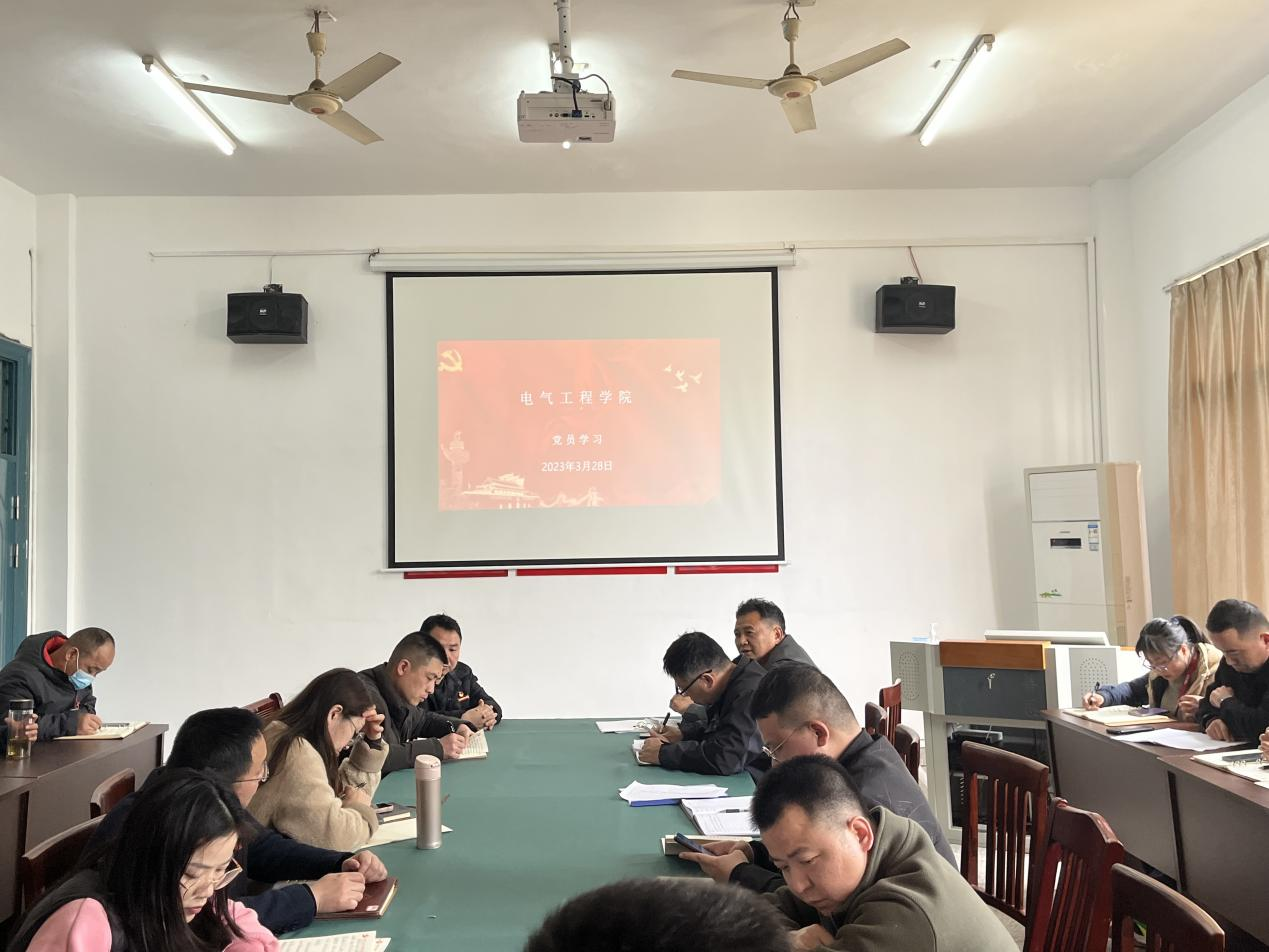 2023年3月28日下午,在明辨楼102党员活动室,电气工程学院召开党员学习会议。会议由分院党支部书记刘绍彬主持,全体党员参加。