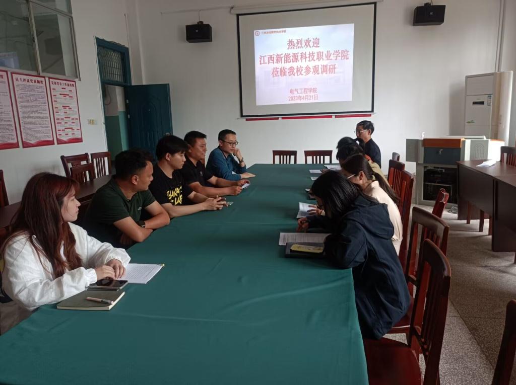 4月21日下午,江西新能源科技职业学校光伏建筑与设计学院院长喻麒麟一行6人来我院考察交流。电气工程学院院长黄锦文接待来访客人,双方进行了座谈交流。机电一体化专业和电气自动化专业骨干教师参加了交流。