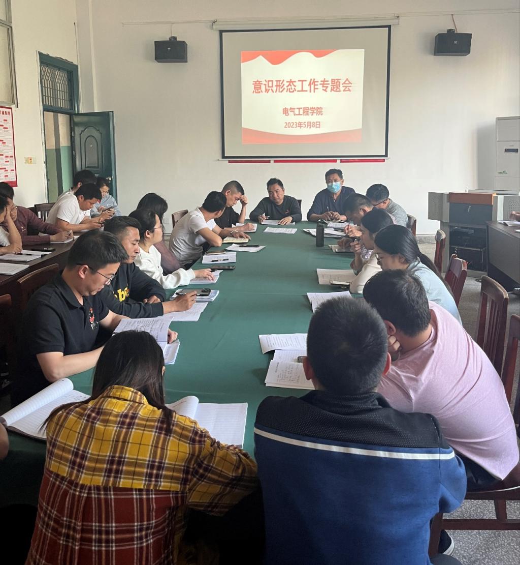 2023年5月8日下午,电气工程学院于明辨楼102举行五月份意识形态工作专题会,会议由电气工程学院党支部书记刘绍彬主持,支委成员、干事、辅导员及教研室主任参加会议。