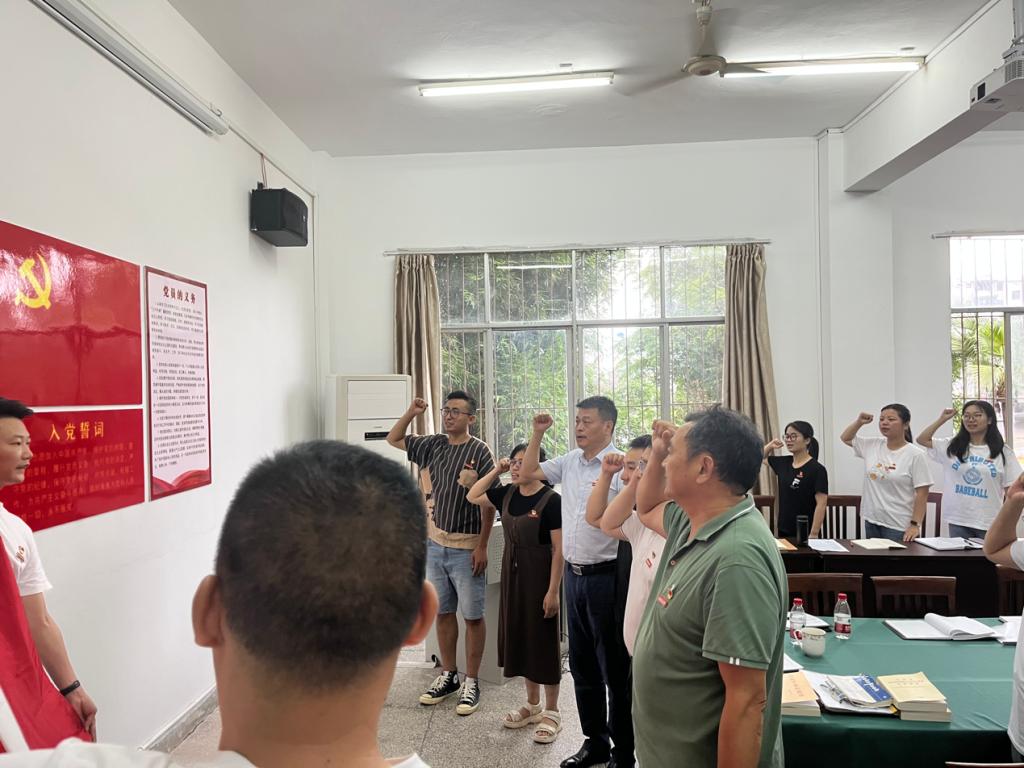会议伊始,为党员郭志江、黄锦文、黄辉、唐淑云、罗榆枫过政治生日。他们带领全体党员庄严举起右手,握紧拳,重温入党誓词。罗榆枫发表感悟:“每次过生日都会想起当初的入党誓词,尽管这些年单位、岗位有变,但初心不改。作为一名辅导员,要时刻提升为学生服务的本领,深入学生中发现问题,解决问题。”