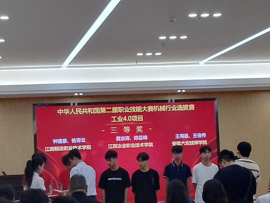 第二届职业技能大赛机械行业选拔赛工业4.0赛项于6月17日在广州机电技师学院举行。全国共有19支代表队38名选手同台竞技,广州机电技师学院摘得桂冠将作为机械行业选拔赛冠军参加第二届职业技能大赛,我校学子获得三等奖。