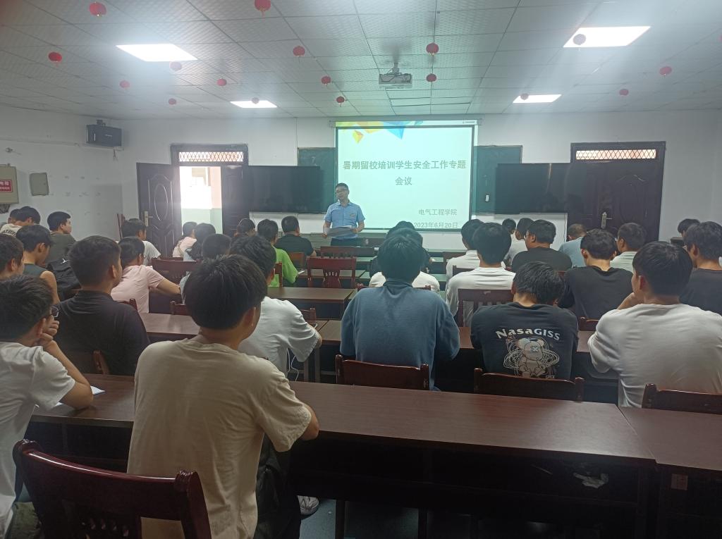 6月20日上午,电气工程学院在老四教312召开暑期留校学生安全工作会。会议由分院副院长黄辉主持,全体指导老师、备赛学生参加会议。