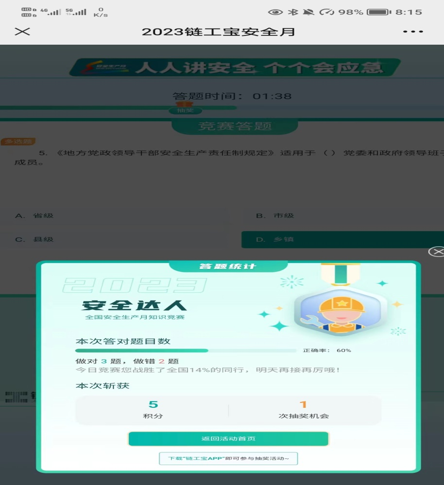 4.组织师生积极参加国家安委办组织的“人人讲安全、个个会应急”网络知识竞赛和线上“逃生演练训练营”活动,提升师生安全意识和自护能力,师生参与数达2000余人次。