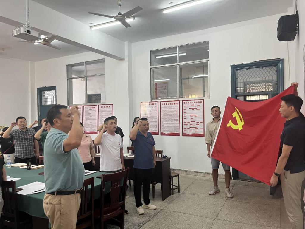 活动伊始,全体党员面对党旗,举起右拳,庄严重温入党誓词。