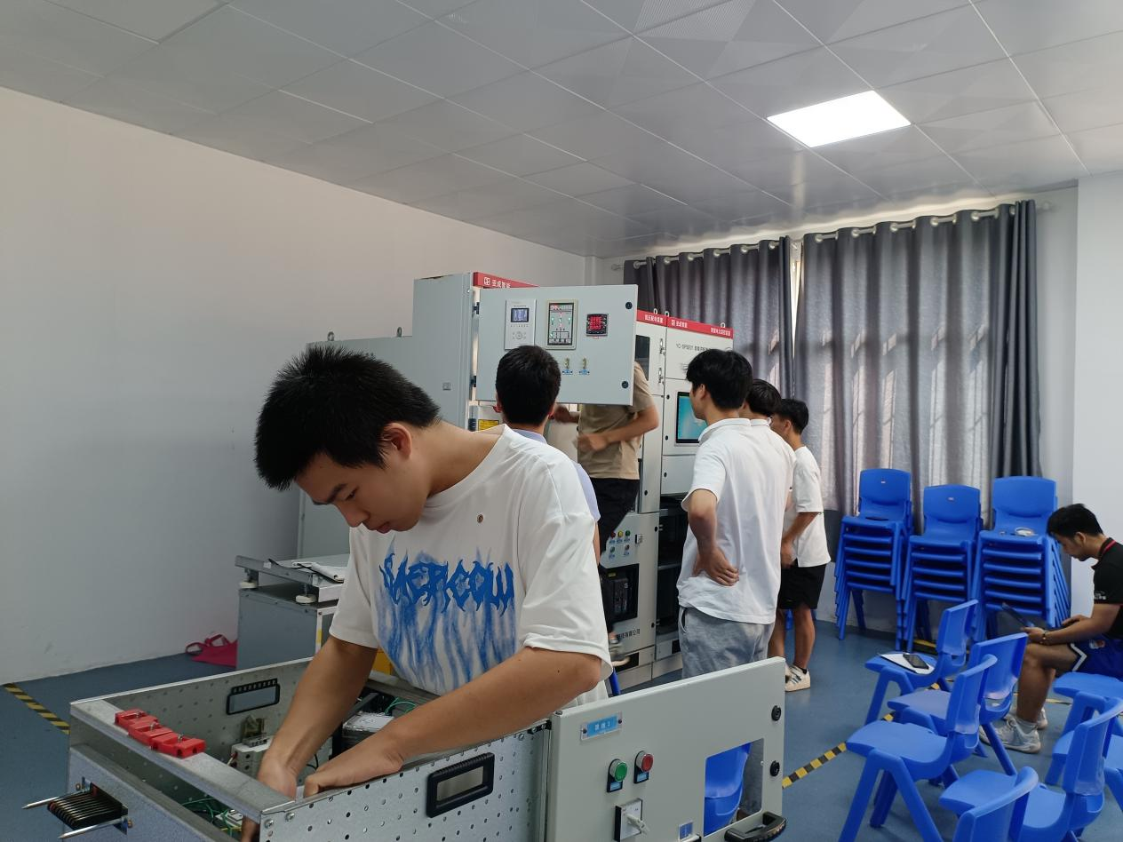 在交流过程中,我校三名学生展示了智能供配电技术实训平台的操作,并对供配电设备运行、检修及维护、继电保护、倒闸操作、故障分析、故障排查、电力监控、供配电知识与技能考核软件进行了详细讲解。经过两天的学习,来访的三名国赛选手在我校工作室学生的指导下,熟练完成倒闸操作、高压配电装置检修、高压配电装置二次回路故障排查、低压配电装置检修及故障排查等项目实施。