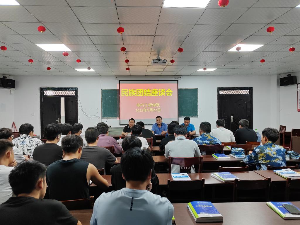 2023年9月22日下午,电气工程学院在明辨楼 312 组织召开“民族团结座谈会”,共话分院各项事业发展美好前景。分院党支部书记刘绍彬主持,院长黄锦文、副院长黄辉出席,30余位少数民族学生参加。