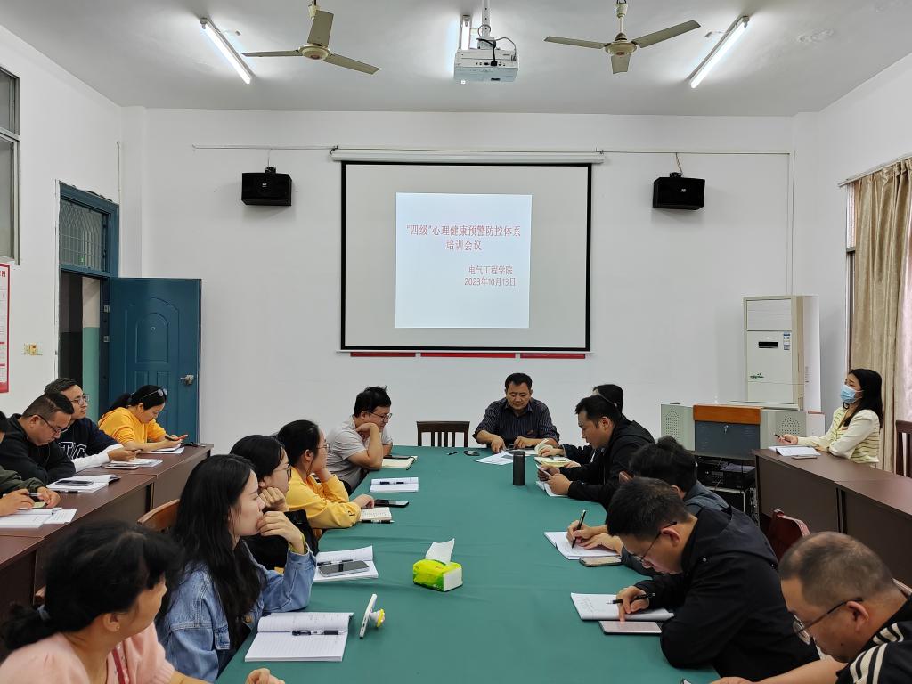 10月13日下午,电气工程学院在明辨楼102召开“四级”心理预警防控体系工作培训会。会议由分院党支部书记刘绍彬主持,全体辅导员、班主任参加。
