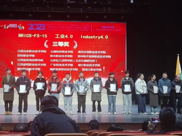 11月10日,2023年金砖国家职业技能大赛(金砖国家未来技能挑战赛)国际总决赛工业4.0赛项在河南开放大学举办。经过两天的激烈角逐,电气工程学院22级机电一体化班学生严乐、黄权威在黄辉、林清的指导下获得三等奖。