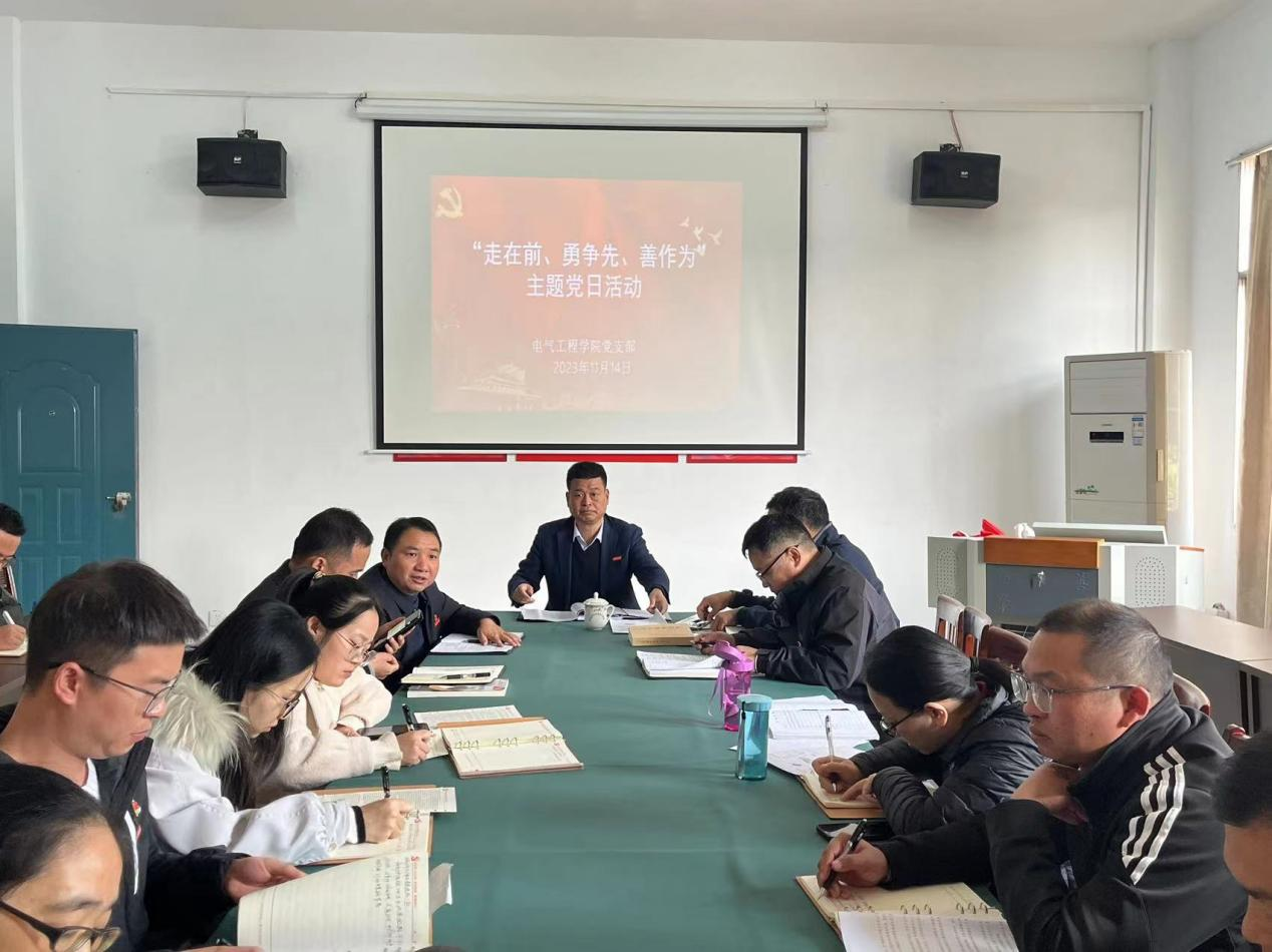 11月14日下午,电气工程学院党支部于明辨楼102组织开展“走在前、勇争先、善作为”主题党日活动。校领导郭志江出席活动。活动由分院党支部书记刘绍彬主持,全体党员参加。