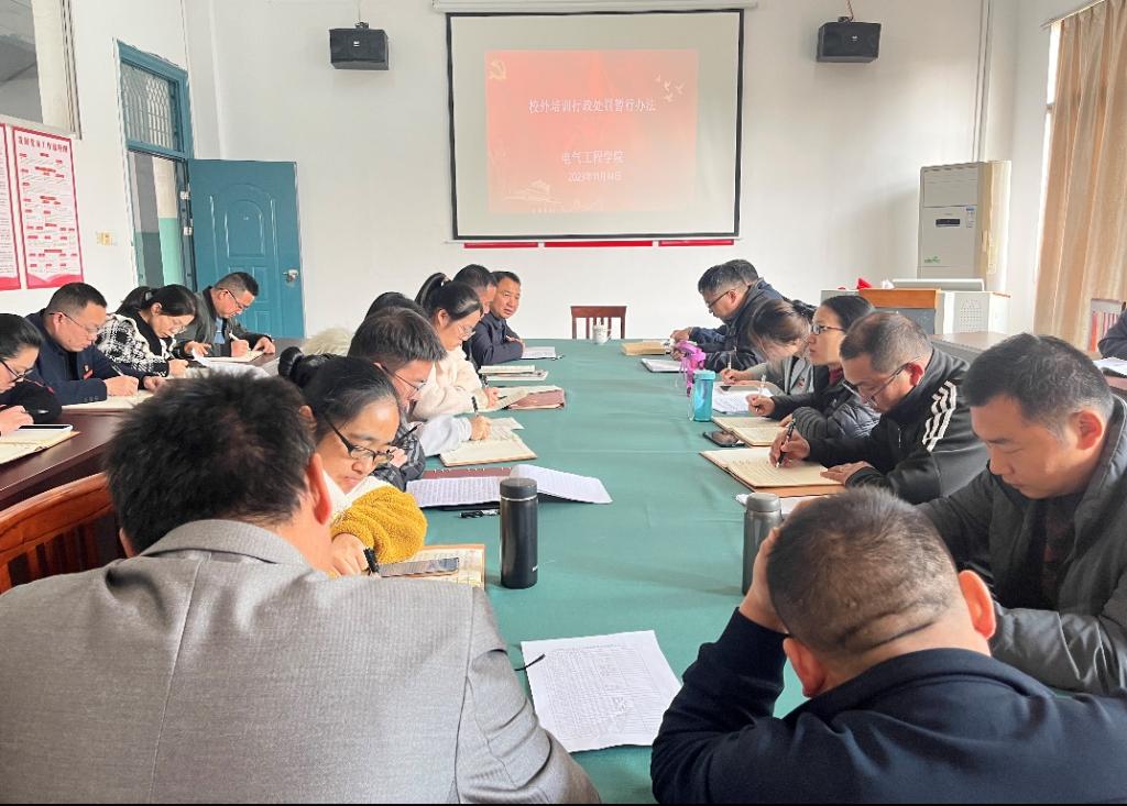 分院副院长黄辉带领各位教师学习《校外培训行政处罚暂行办法》,确保每位教师知晓《校外培训行政处罚暂行办法》规定内容,提高认识、不越红线。