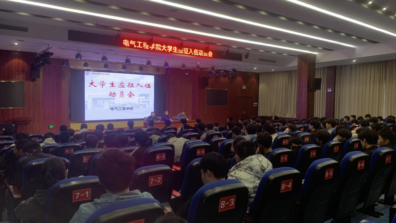 11月30日,在学校图书馆报告大厅,电气工程学院召开征兵动员会。电气工程学院党支部书记刘绍彬、院长黄锦文出席,24届高职辅导员和毕业生代表参加会议。会议由谭永峰老师主持。