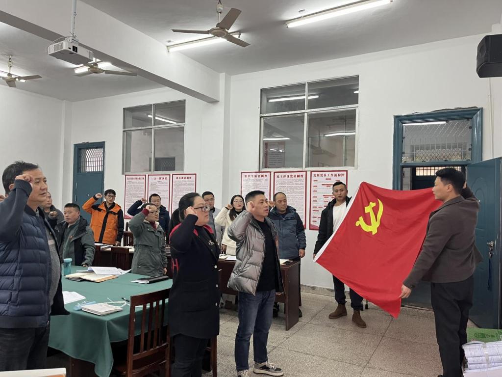 刘绍彬领学《党章》。党员们联系自身实际,围绕“亮成果——认真总结 2023 年度基层党组织组织生活会、专题组织生活整改措施落实情况以及党员承诺践诺完成情况”的内容在会上积极发言。