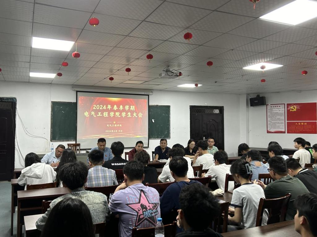 4月16日,在明辨楼312,电气工程学院召开2024年春季学期学生大会。分院党支部书记刘绍彬、院长黄锦文出席,会议由谭永峰老师主持。