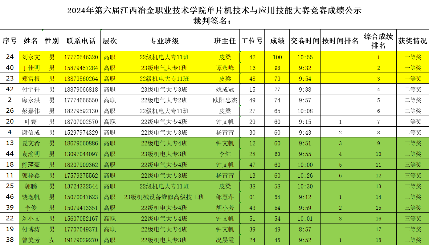 本次比赛的工作任务是为温室大棚控制器设计控制程序。来自22机电大专11班的刘永文、郑富根,23电气自动化大专1班的丁佳明三位同学荣获本届大赛一等奖。