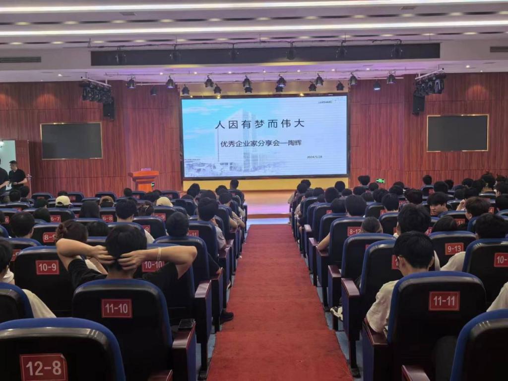 讲座中,陶辉以《人因梦而伟大》为题,结合工匠精神的主要内涵及亲身经历,从求学、工作、生活等方面,分享了自己如何坚定理想信念、坚守匠人初心,实现从一名普通大学生到劳模的成长之路。他希望同学们能够加强实操技能的学习,以技艺传承为使命、以技术升华为初心,以执着信念、勤奋努力、坚持学习为支撑,发扬新时代工匠精神,让青春在火热的实践中绽放绚丽之花。