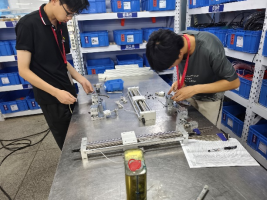 7月15日,进行了详细的安全教育后,20位同学前往协讯机器人事业部实践学习。在实践学习过程中,同学们积极与企业工程师进行交流,了解了非标设备的研发制造技巧和维护保养方法。同时,同学们还在工程师的指导下,参与了实际的生产性实训。