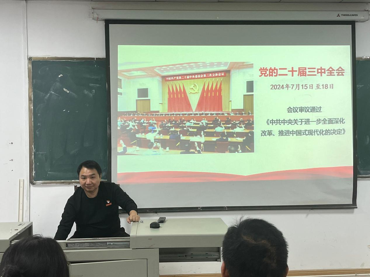 黄锦文分别从“把握历史主动,改革波澜壮阔”、“锚定关键领域, 擘画改革蓝图”、“遵循改革规律,保持战略定力”三个部分进行了讲述,带领全体党员学习宣传贯彻党的二十届三中全会精神,了解中国共产党的改革史。黄锦文讲到,作为党员要不为任何风险所惧、不为任何干扰所惑,集中力量办好自己的事,做新时代的先锋模范,在改革奋进中实现自我价值。