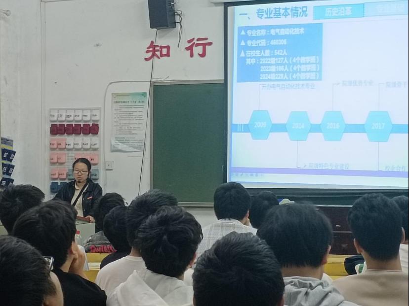 近日,电气工程学院举办了2024级新生专业介绍会,以加强新生对专业的认知。介绍会针对机电一体化、电气自动化、机电设备技术等专业分别进行了专项讲座。