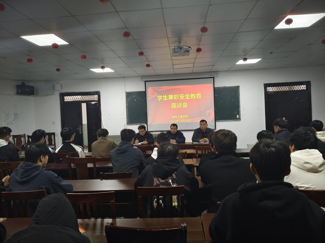 11月28日下午,电气工程学院在明辨楼312教室召开兼职学生安全教育座谈会。会议针对近期大学生兼职被骗现象一直处于高发态势的问题,做专门提醒,以提升兼职学生的自我防范意识。分院院长黄锦文、学管科长谭永峰、辅导员胡雯老师以及兼职学生参会。
