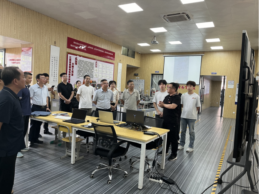 会议分为现场参观与座谈交流两个环节。与会人员首先参观了黄辉、黄贤振省级技能大师工作室,深入了解学院在技能人才培养模式创新、技术成果转化等方面的突出成效。座谈会上,各方代表聚焦“深化技能人才培育,助力产业高质量发展”主题展开研讨: