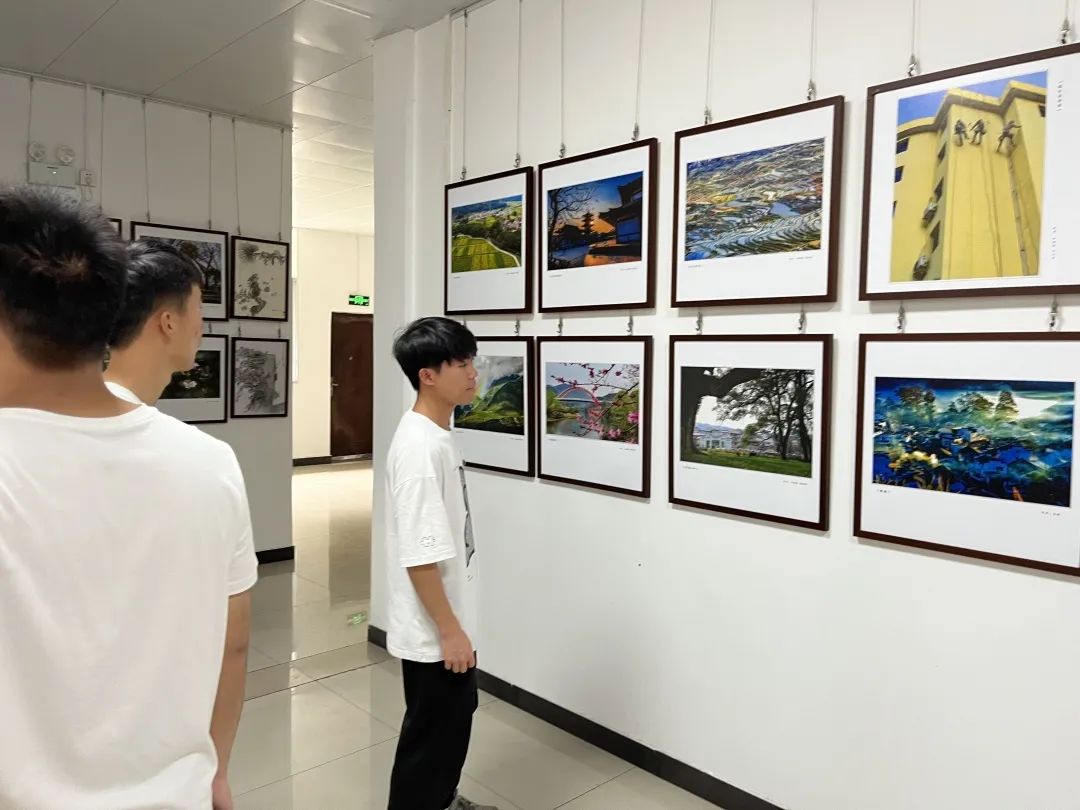 2023年6月16日,智能工程学院入党积极分子、部分学生代表及书法社成员在学校书法社王德仁老师和分院何帆老师的带领下,前往新余市老年大学参观书画作品。