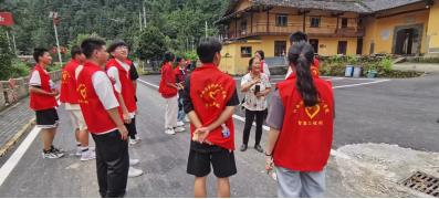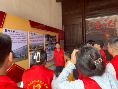 7月25日,幽居村的青山里有一抹红色掠过,在泥泞的山路上,“自找苦吃”实践队师生一行20人正大步行进着,前往位于五公里外的大梅村的湘鄂赣省苏维埃政府旧址及省军区司令部旧址等地开展走读学习,追寻红色印记,传承革命精神。