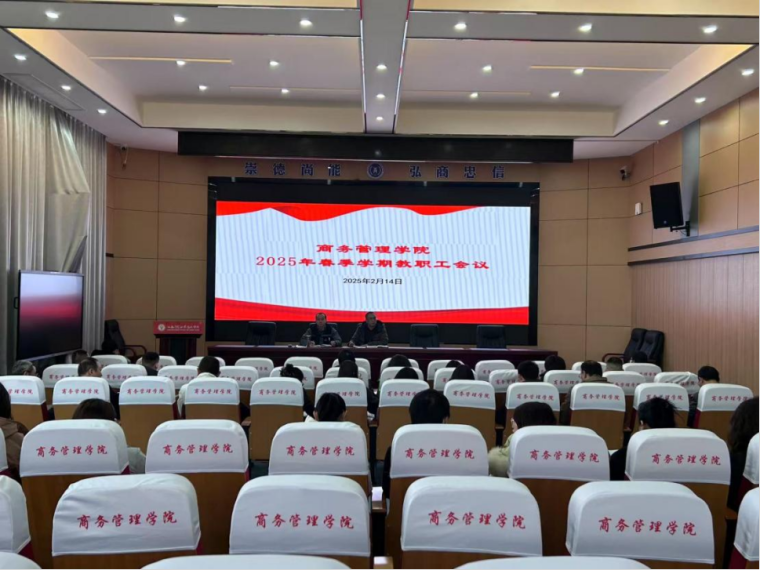2025年2月14日下午,在南校区三教301多功能厅,商务管理学院召开了2025年春季学期教职工会议。会议由分院院长郭斌主持,党支部书记唐毓林、副院长江小美、综合干事阮星星及全体教师参加。