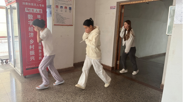 中午时刻,一阵急促刺耳的警报声划破南校区宿舍楼的宁静,消防演练正式拉开帷幕。面对突如其来的宿舍“火情”,宿管人员拉响警报同时,第一时间向相关部门汇报,及时拨打“119”。接到通知后,分院立即启动应急预案,当天值班辅导员组织人员迅速打开所有安全通道。只见楼道内烟雾弥漫,正在宿舍休息或学习的同学们在辅导员、宿管委员会学生干部的引导下,用湿毛巾捂住口鼻,弯腰低姿,按照逃生路线,快速有序撤离至安全区域。各寝室长迅速清点人数,向辅导员老师报告,确保没有一名同学被困。整个演练过程紧张有序,全体师生在规定时间内安全撤离。