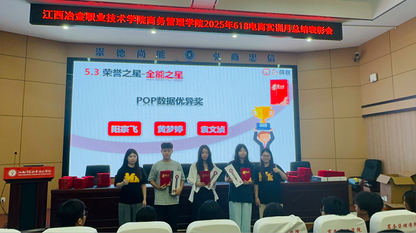 2025年6月25日 、26日,商务管理学院在新三教301隆重举行了“2025年618电商实训月暨校企合作实践项目”总结表彰大会。分院院长郭斌、副院长江小美、实训导师及全体参训学生参加。