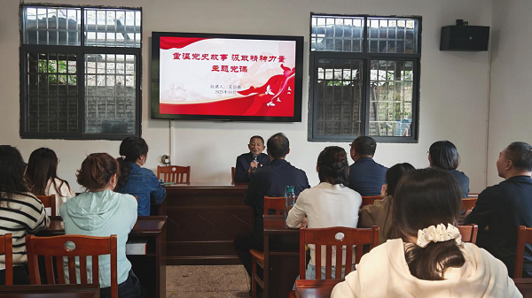 活动特别邀请了荣获“2025中国好人”、“最美退役军人”等称号的渝水区“老兵宣讲团”成员吴岱根同志讲授党课。吴岱根结合自己珍藏的8000余件红色藏品,生动讲述了红八军英勇故事等感人至深的党史故事。他生动风趣的讲授赢得了全体学员的一致好评。