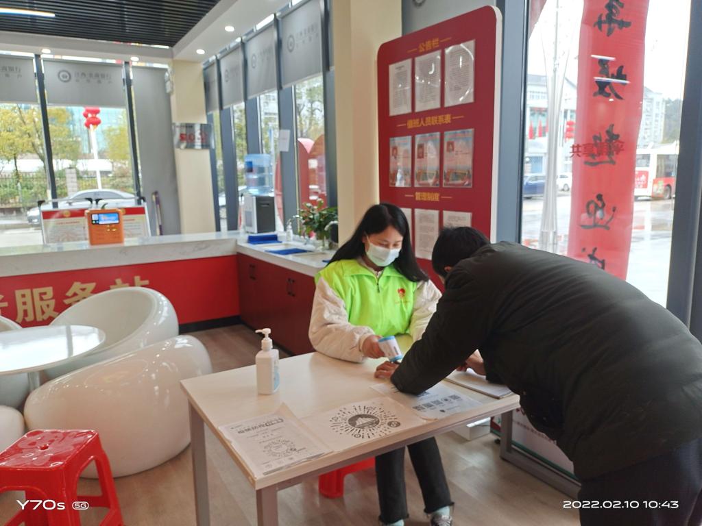 【现代服务学院廖斐报道】“您好,麻烦把口罩戴一下。”“请出示一下您的健康码。”春节假期刚刚过去,乐安县的返乡人员开始增多。为了做好疫情防控工作,引导社区居民科学防控,近日,现代服务学院预备党员袁乐梅积极参与江西省抚州市乐安县党群服务中心的疫情防控工作。