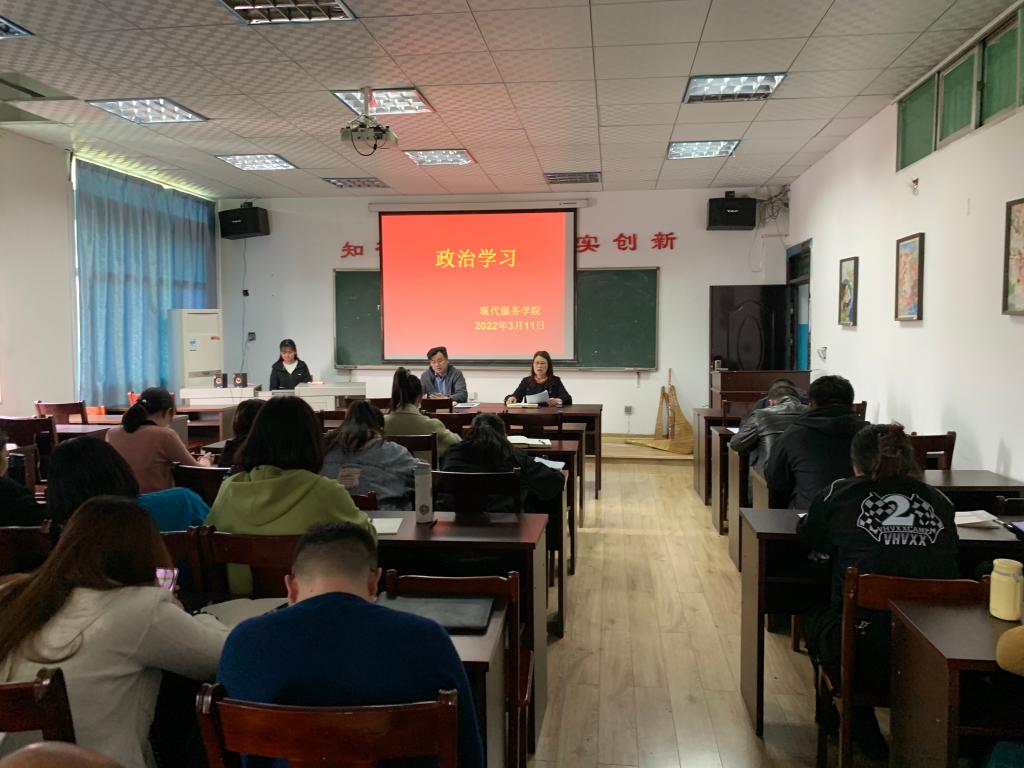 【现代服务学院徐卉报道】3月11日,现代服务学院集中开展政治学习,传达学习习近平总书记在十九届中央纪律检查委员会第六次全体会议上的重要讲话精神。会议由支部副书记欧阳小缨主持,全体教师参加。