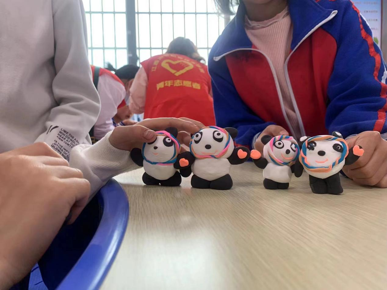 在制作“冰墩墩”过程中,对于这一群“心灵手巧”的老师们,小朋友们都非常的喜欢。发己之声,抒己之情,作为幼教专业即将迈入幼师群体的大二学子,队员们充分发挥了自己的专业知识和热情,服务社会群体,为童心筑梦,为祖国喝彩。