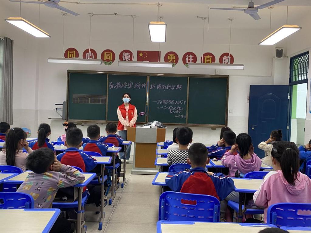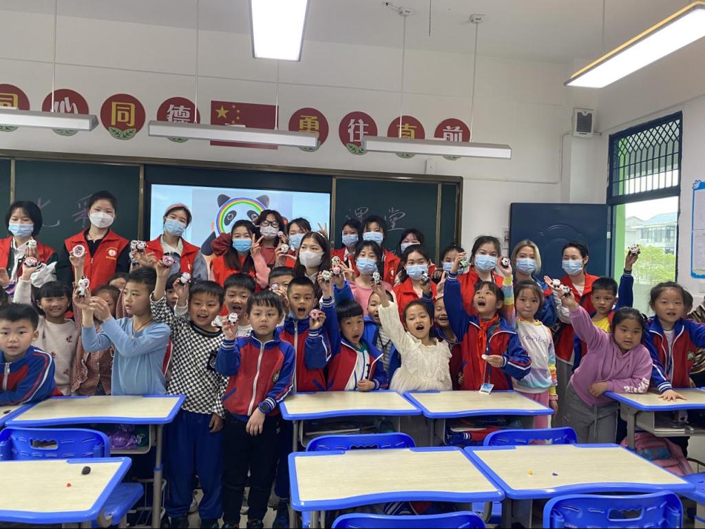 【现代服务学院徐卉报道】近日,现代服务学院青年先锋队的志愿者们来到河下镇中心小学,开展共建活动“七彩课堂”之蓝色课堂。与传统的授课模式不同,蓝色课堂项目除了课堂讲授知识外,还举办了一次小型的冰墩墩黏土制作活动,替孩子们努力实现“一人一墩”的梦想。通过寓教于乐的教学方式,启发小朋友们在不断地观察、感受和制作过程中,弘扬冬奥精神,拼搏崭新学期。启发式的教育方式令蓝色课堂受到了普遍欢迎。