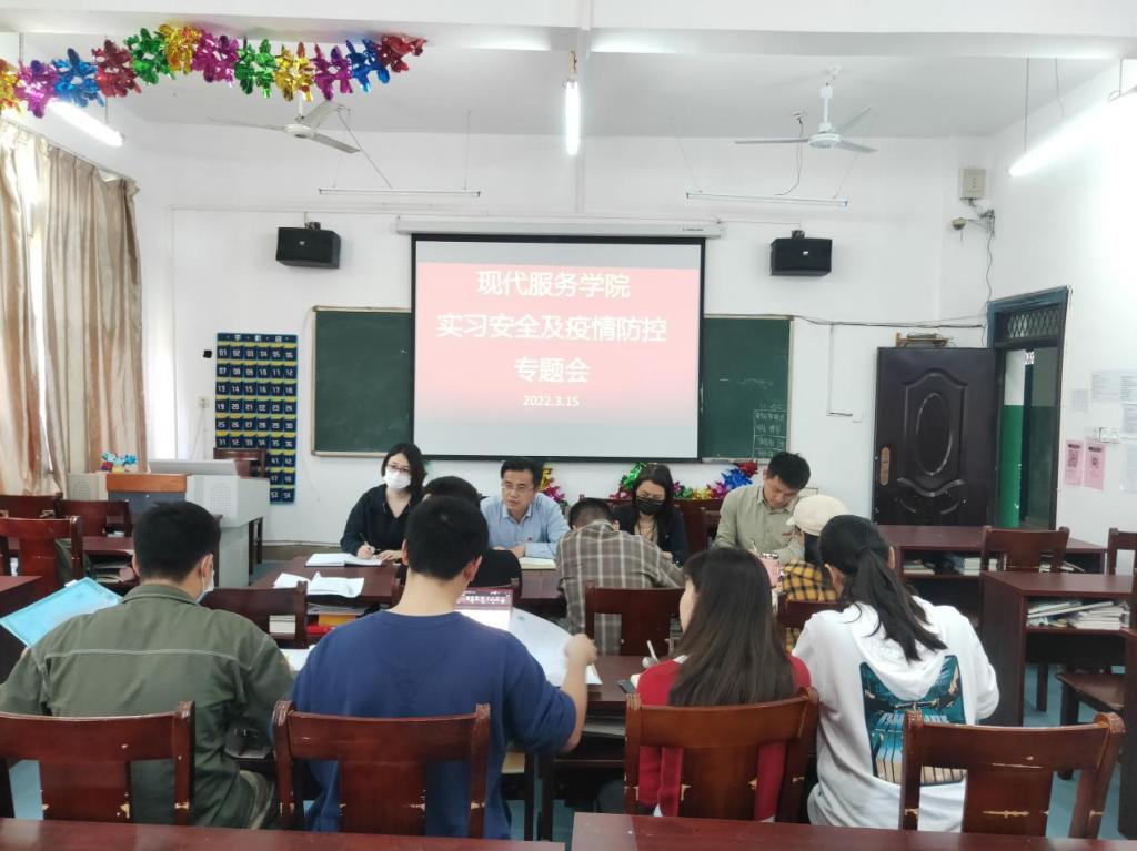 【现代服务学院敖敏军报道】为进一步做好实习安全管理及疫情防控工作,3月15日下午,现代服务学院召开2022年春季学期实习安全及疫情防控专题会,会议由院长阮和平主持。
