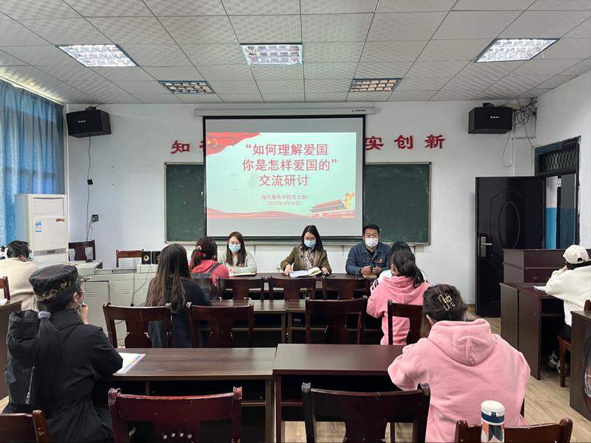 【现代服务学院徐卉报道】近日,在老三教503教室,现代服务学院开展了以“我对党的认识”和“如何理解爱国,你是怎样爱国的”为主题的培训活动。会议由党支部副书记欧阳小缨主持,全体入党申请人参加。
