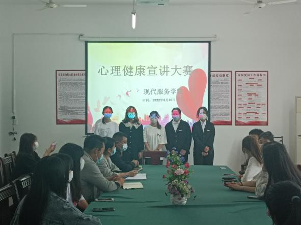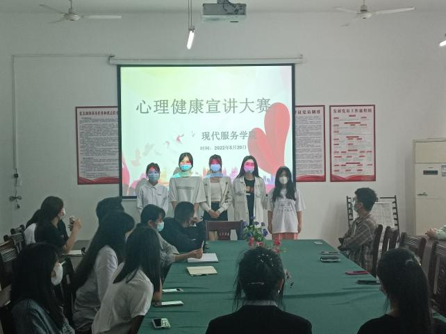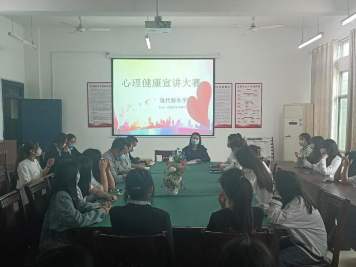 【现代服务学院李思晨报道】5月20日下午,在老三教党员活动室,现代服务学院组织开展“5.25”心理健康知识宣讲比赛活动。分院党支部副书记欧阳小缨出席活动。团总支书记武凡、学生科科长林亮亮、学管干事李思晨老师、李昶志老师担任评委。各班级心理健康委员参加比赛活动。