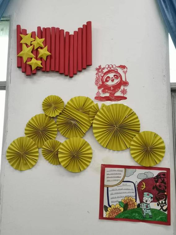 传统的剪纸艺术来表达浓浓的爱国心、爱党情。通过红色文化墙激发学生的民族情怀,形成以爱国为根本的社会主义核心价值观。