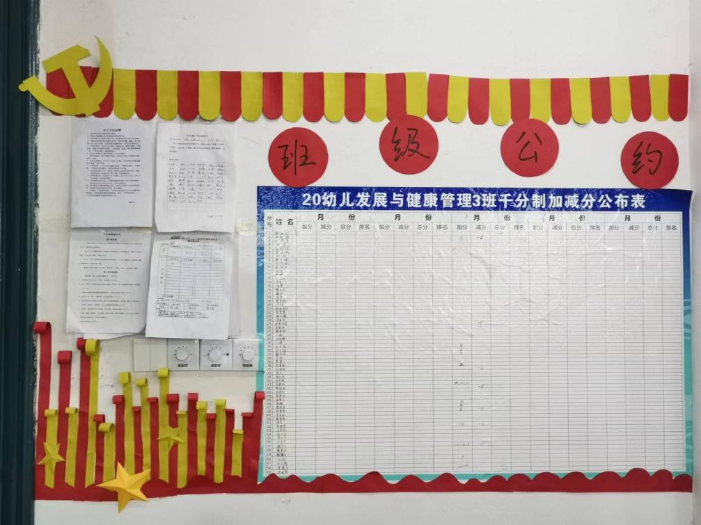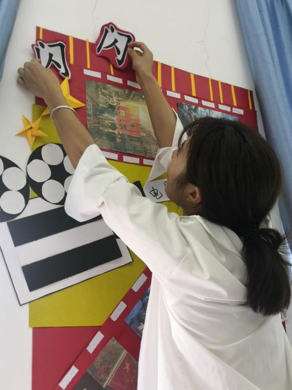 【现代服务学院谢日鑫报道】6月8日,现代服务学院20级幼管3班开展红色环创班级布置活动,全班同学积极参与。