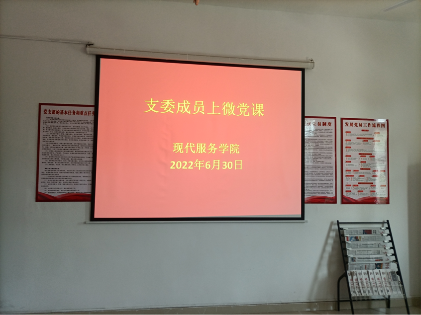 【现代服务学院徐卉报道】为弘扬伟大建党精神,巩固党史学习教育成果,近日,现代服务学院开展支委成员上微党课活动。