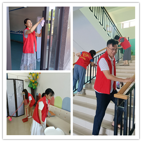 党员志愿者们分工合作,快速投入到大扫除中。有的挥动手中的扫帚清扫走廊的路面、垃圾,有的忙着用抹布擦桌椅、门窗和扶梯,让北校区三教教学楼面貌焕然一新,为迎接返校学生营造了一个干净、整洁、舒适的工作和学习环境。