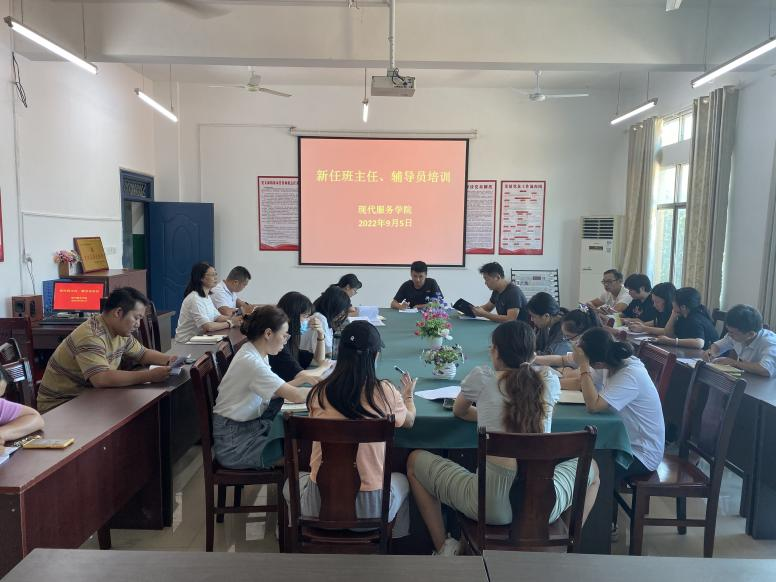 【现代服务学院赵令弘报道】9月5日下午,现代服务学院举办新任班主任、辅导员业务培训活动。本次培训由分院党支部欧阳小缨主持,全体班主任、辅导员参与。